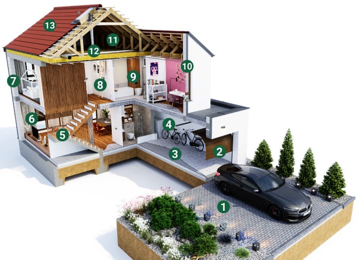 Wygoda i jakośćSprawdź standard wykończenia w naszych domach na sprzedaż w Bielanach Wrocławskich. Rolety elektryczne, pompa ciepła, ogrzewanie podłogowe w całym domu… to tylko kilka zalet, jakie niesie za sobą wybór nowoczesnej szeregówki na stworzonym przez nas osiedlu! Zostały one zaprojektowane z myślą o energooszczędności i komforcie przyszłych mieszkańców.